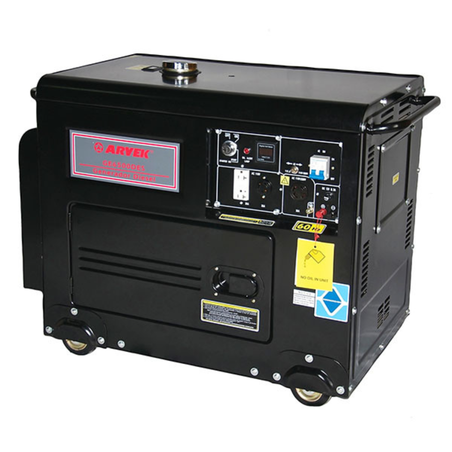 El Generador a Diésel Abierto ARVEK GE8500DE de 6,500 Vatios de potencia máxima, es su alternativa más confiable para aplicaciones residenciales y comerciales. Regulador Automático de Voltaje (AVR). Incluye Batería.